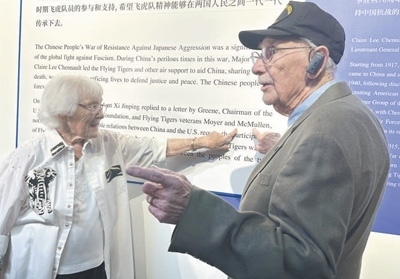 走進(jìn)博物館,代表團(tuán)成員在一張張老照片、一件件珍貴實(shí)物前流連,認(rèn)真聆聽講解,還不時與身邊親友交談。麥克馬倫在展板上看到自己的名字后,興奮地向妻子珍妮弗指了指名字的位置。他曾擔(dān)任B—24轟炸機(jī)機(jī)頭炮手和助理飛行機(jī)械師,在昆明和成都參加對日作戰(zhàn)??粗AЧ窭锏恼蛊?,他感慨:“美中兩國人民的友誼將延綿不斷?!?/p>