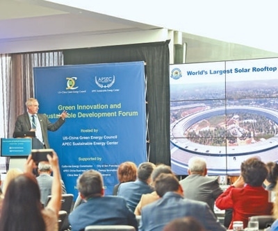 當(dāng)?shù)貢r(shí)間11月13日,由亞太經(jīng)合組織可持續(xù)能源中心和美中綠色能源促進(jìn)會(huì)共同主辦的“綠色創(chuàng)新與可持續(xù)發(fā)展論壇”在舊金山舉行,與會(huì)嘉賓就清潔能源、綠色發(fā)展、共同應(yīng)對氣候變化等議題交流研討。本報(bào)北美中心分社 伊芙莉·妮可·梅菲爾德攝