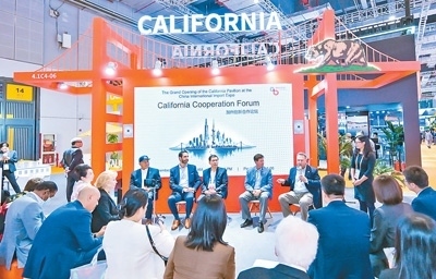 11月6日,加州創(chuàng)新合作論壇在第六屆中國國際進(jìn)口博覽會(huì)期間舉行。圖為中美嘉賓在論壇上交流。王善華攝