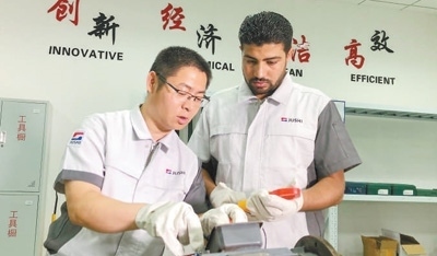 中國(guó)師傅們的悉心教導(dǎo),讓埃方員工對(duì)中國(guó)感情愈加深厚。烏薩馬表示,自己能從零開(kāi)始當(dāng)上部門(mén)副經(jīng)理,特別要感謝他的中國(guó)師傅沈林洪?!皫煾翟诠ぷ魃鲜职咽謧魇诩寄?,讓我的專(zhuān)業(yè)技術(shù)水平逐漸提升。他在生活上也對(duì)我百般照顧,助我快速成長(zhǎng)?!睘跛_馬說(shuō),雖然師傅現(xiàn)在已經(jīng)回國(guó)了,但他們還一直保持著聯(lián)系,“每逢春節(jié)、開(kāi)齋節(jié)等兩國(guó)的重要節(jié)日,我們都會(huì)互相問(wèn)候?!?/p>