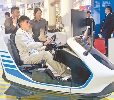 工作人員在展示遠(yuǎn)程駕駛平臺。本報記者 施 芳攝