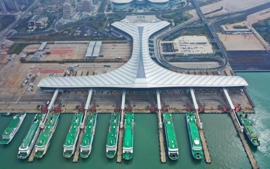 這是海口新海滾裝碼頭客運(yùn)綜合樞紐站項(xiàng)目(11月29日攝,無(wú)人機(jī)照片)。新華社記者郭程攝