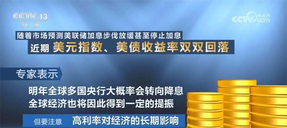隨著市場(chǎng)預(yù)測(cè)美聯(lián)儲(chǔ)加息步伐放緩甚至停止加息,近期,美元指數(shù)、美債收益率雙雙回落,專(zhuān)家表示,明年全球多國(guó)央行大概率會(huì)轉(zhuǎn)向降息,全球經(jīng)濟(jì)也將因此得到一定的提振。但是,要注意的是,高利率對(duì)經(jīng)濟(jì)的長(zhǎng)期影響。在國(guó)際貨幣基金組織(IMF)此前發(fā)布的《世界經(jīng)濟(jì)展望》中預(yù)計(jì),2024年全球經(jīng)濟(jì)增速為2.9%,較2023年有所下降。