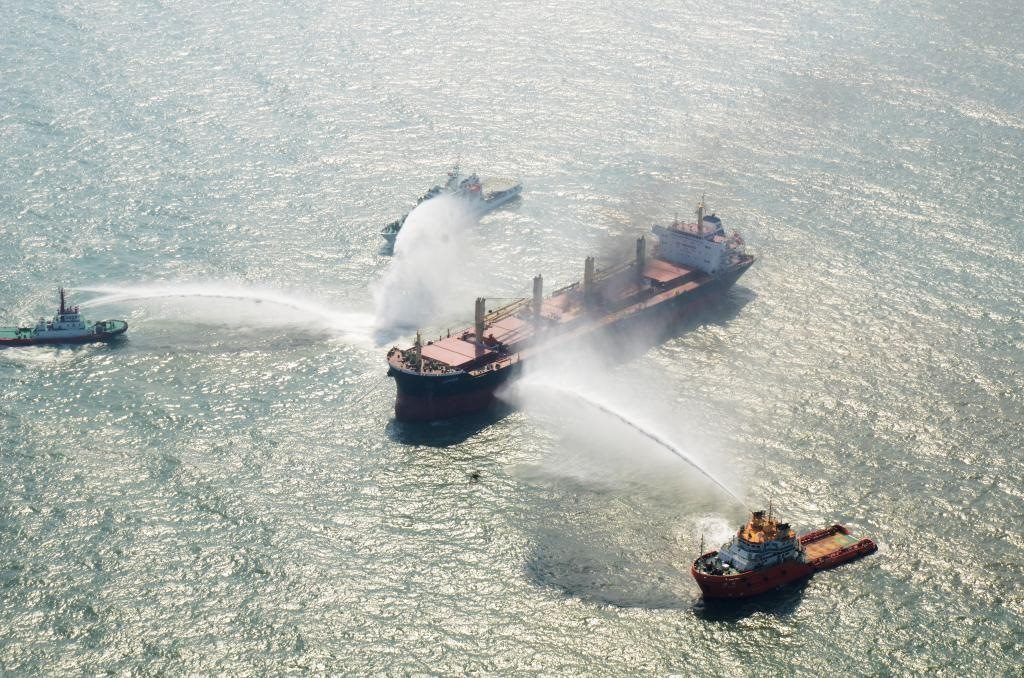 2017年10月31日,中國-東盟國家海上聯(lián)合搜救實船演練在廣東湛江海域舉行。該演練是各方落實《南海各方行為宣言》的一次海上務實合作項目。新華社記者毛鑫攝