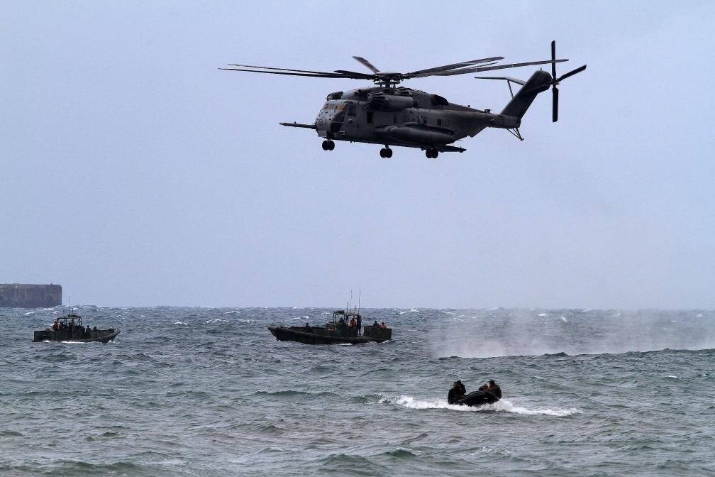 2013年9月20日,在菲律賓甲米地省,一架美軍CH-53E軍用直升機運載美國和菲律賓士兵參加演習。新華社發(fā)(烏馬利攝)