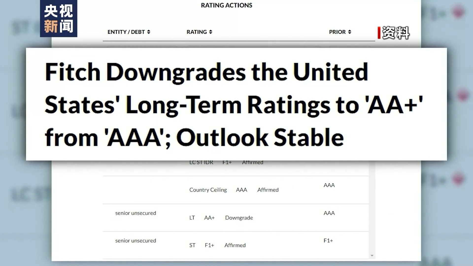 到了2023年8月1日,國際評級機構(gòu)惠譽將美國長期外幣發(fā)行人違約評級從AAA下調(diào)至AA+?;葑u當(dāng)天發(fā)表聲明說,下調(diào)美國信用評級主要由于美國政府債務(wù)負擔(dān)居高不下且不斷加重,未來3年財政狀況預(yù)計將持續(xù)惡化。