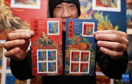 新華社巴黎1月26日電(記者張百慧)為迎接中國農(nóng)歷新年,法國郵政集團26日在巴黎舉行中國龍年生肖紀(jì)念郵票發(fā)行儀式。