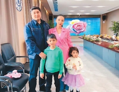 中哈(連云港)物流合作基地派駐人員阿孜(左一)和家人參加公司組織的插花活動。周 丹攝