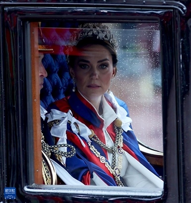 2023年5月6日,凱特王妃在英國(guó)倫敦參加英國(guó)國(guó)王查爾斯三世的加冕儀式后,乘馬車(chē)從威斯敏斯特教堂返回白金漢宮(資料照片)。新華社記者 李穎 攝
