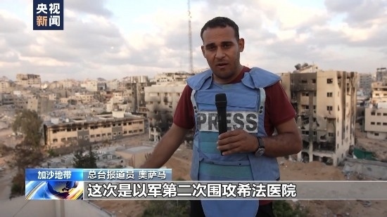 總臺(tái)報(bào)道員 奧薩馬:我們還觀察到,我身后的希法醫(yī)院附近的民居被大量摧毀,醫(yī)院附近的民房全都成為以軍襲擊目標(biāo)。只因?yàn)橐攒娍紤]到這些房屋可能對(duì)駐扎在醫(yī)院的以軍構(gòu)成危險(xiǎn)。這景象非常悲慘,這里還有一處臨時(shí)墓地被炸毀,其中埋葬的大量遺體已不知去向。這里埋葬的是以軍第一次圍攻希法醫(yī)院時(shí)身亡的人。這次是以軍第二次圍攻希法醫(yī)院,而這次圍攻對(duì)于醫(yī)院以及附近的每個(gè)人來說,都是痛苦和血腥的回憶。