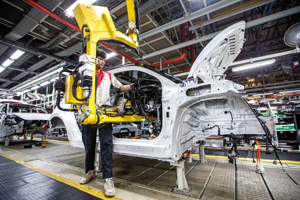 ?1月12日,工人在位于泰國羅勇的長城新能源汽車制造基地生產(chǎn)車間內(nèi)工作。(圖/新華社)