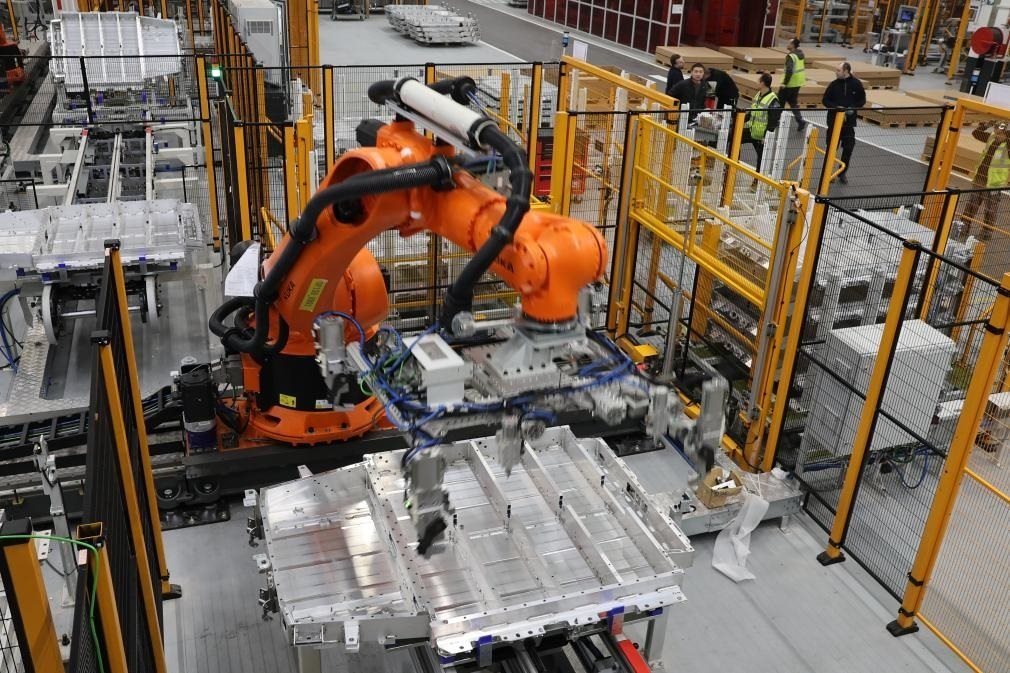 2月23日,在法國呂茨,搬運機器人在中國敏實集團(tuán)與法國雷諾集團(tuán)成立的合資公司的電池盒產(chǎn)線上工作。新華社記者張百慧攝