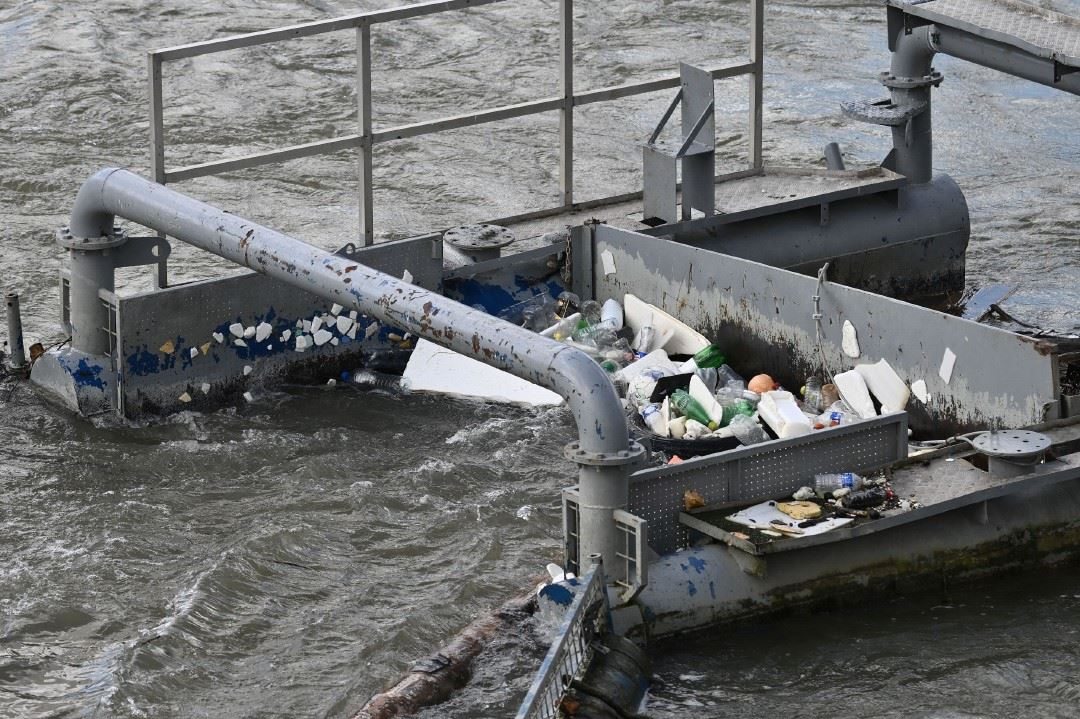 當(dāng)?shù)貢r間2024年4月10日,法國巴黎,塞納河上的垃圾泛濫成災(zāi)。