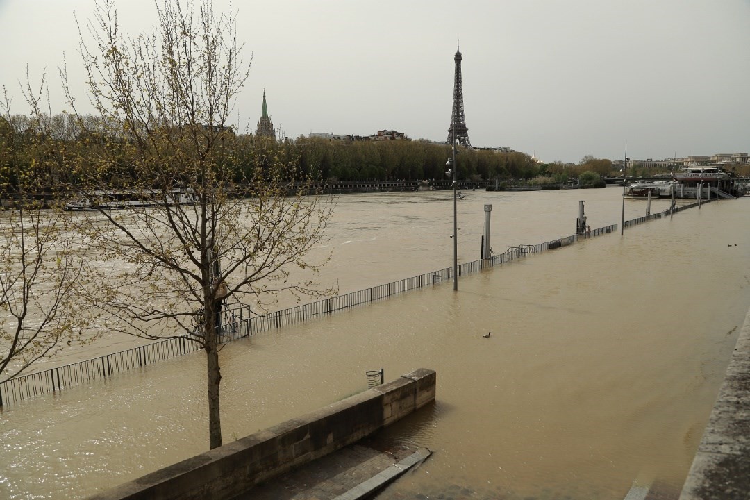 當(dāng)?shù)貢r間2024年4月6日,法國巴黎,塞納河沿岸被洪水淹沒。