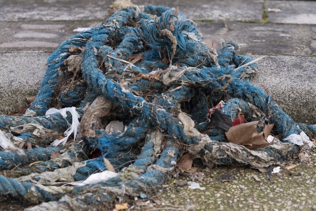 當(dāng)?shù)貢r間2024年2月14日,法國巴黎,塞納河岸邊被丟棄的繩子和垃圾。