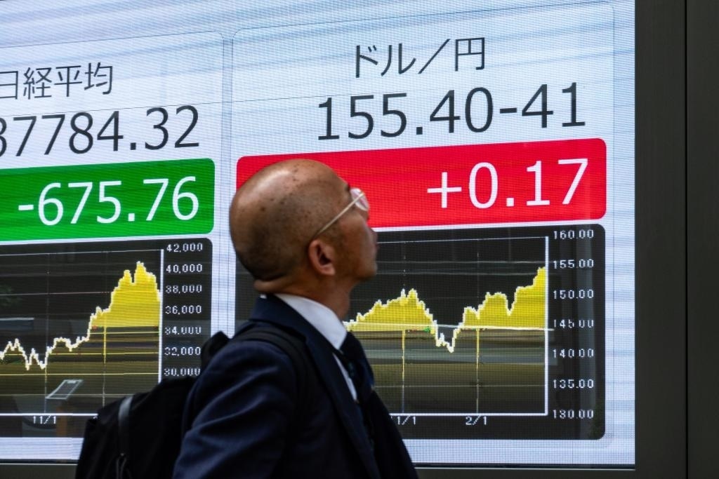 4月25日,行人走過日本東京一處顯示實(shí)時匯率的電子屏幕。新華社記者張笑宇攝