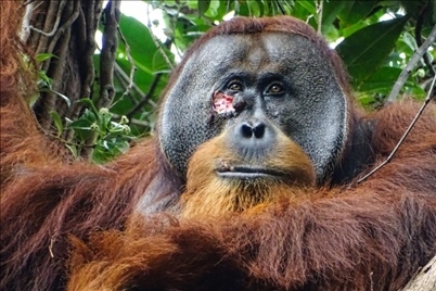《衛(wèi)報(bào)》稱,根據(jù)報(bào)告,研究小組在追蹤一只被命名為“拉庫斯”的雄性蘇門答臘猩猩時(shí),發(fā)現(xiàn)它的面部有一道新傷,這可能是與另一只雄性猩猩爭斗的結(jié)果。3天后,研究人員看到 拉庫斯正在咀嚼一種藤本攀援植物的莖葉。報(bào)告寫道,“在拉庫斯開始采食藤本植物13分鐘后,它開始咀嚼葉子,但沒有吞咽,而是用手指將口中的植物汁液直接涂抹在面部傷口上。