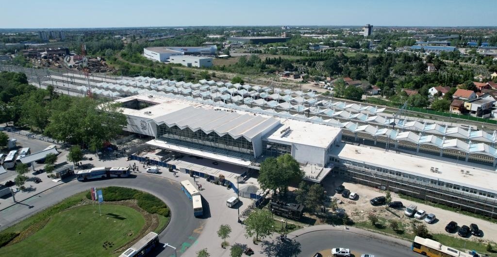 ?這是4月29日拍攝的塞爾維亞諾維薩德火車站(無人機照片)。新華社發(fā),劉瑜欣攝