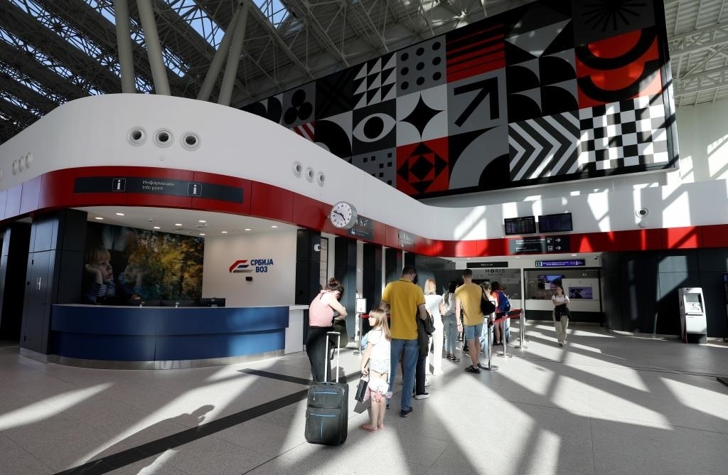 ?4月29日,在塞爾維亞貝爾格萊德中央火車站,人們在排隊購買車票。新華社記者李穎攝