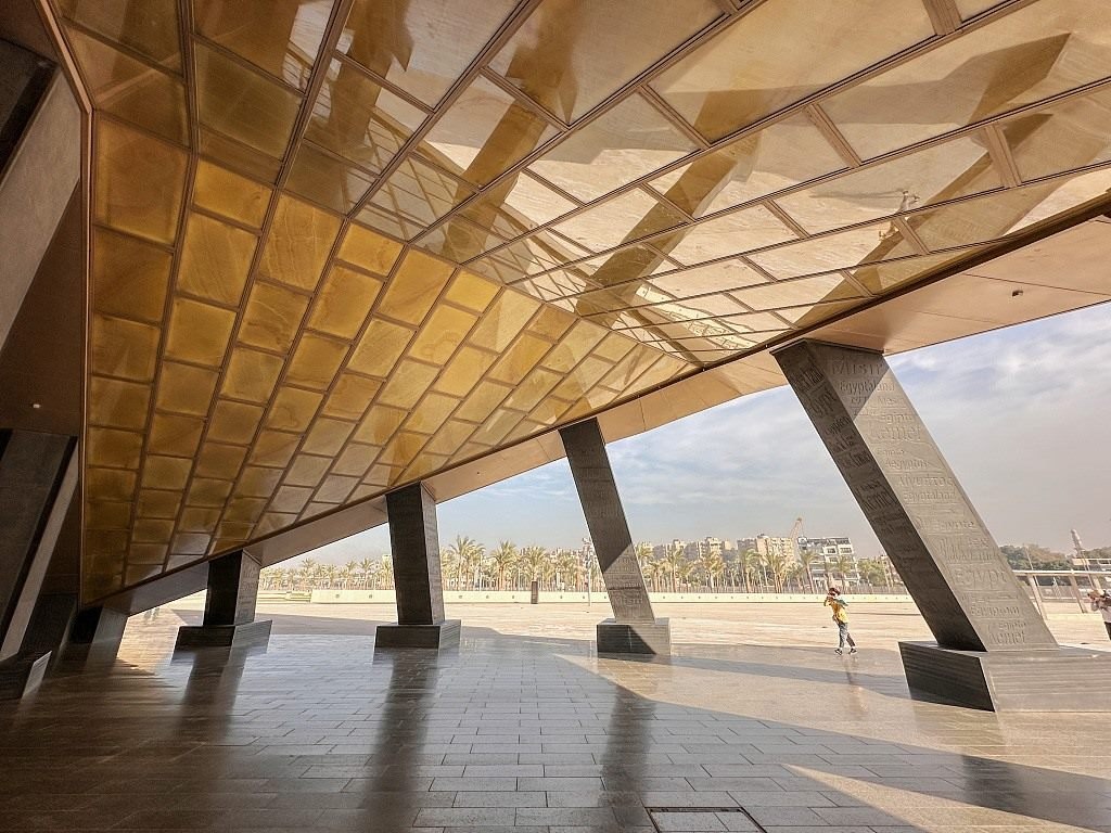 當(dāng)?shù)貢r(shí)間2023年11月28日,大埃及博物館門口。