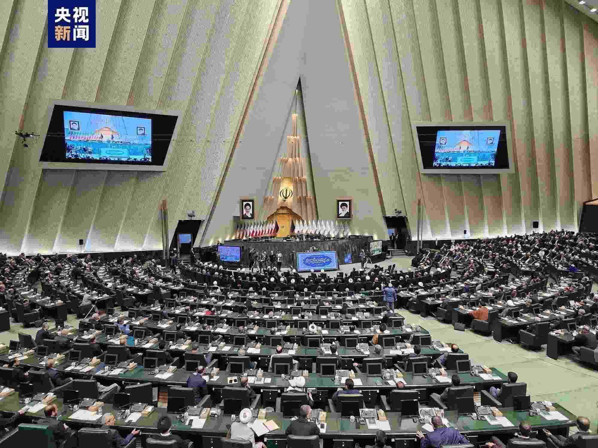 總臺記者 李健南:我所在的位置是伊朗首都德黑蘭的議會大樓,伊朗第12屆議會的宣誓就職典禮在這里舉行,這也意味著伊朗的新一屆議會成員正式開始履職。