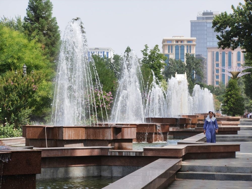 ↑位于杜尚別的魯達(dá)基公園。 新華社記者 曹陽 攝