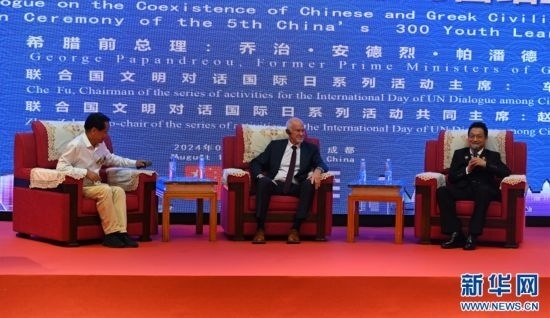 聯(lián)合國文明對話國際日系列活動(dòng)“中希文明交流互鑒對話”近日在四川省成都市“中華雷鋒志愿者小鎮(zhèn)”舉行。希臘前總理喬治·帕潘德里歐,聯(lián)合國藝術(shù)基金會(huì)主席、“2024中華雷鋒志愿者特別行動(dòng)計(jì)劃”負(fù)責(zé)人車夫出席并開展對話。