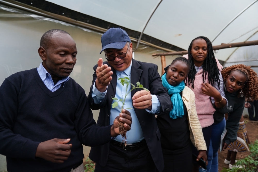 2023年9月18日,在肯尼亞納庫(kù)魯郡舉辦的中非農(nóng)業(yè)發(fā)展和減貧示范村番茄生產(chǎn)培訓(xùn)班上,來(lái)自中國(guó)的農(nóng)學(xué)教授劉高瓊(左二)為肯方學(xué)員指導(dǎo)農(nóng)業(yè)技術(shù)。多年來(lái),中國(guó)農(nóng)業(yè)專家在當(dāng)?shù)亻_展了知識(shí)培訓(xùn)、技術(shù)指導(dǎo)和農(nóng)業(yè)設(shè)施修繕等工作,有效助力中國(guó)先進(jìn)的農(nóng)業(yè)技術(shù)在納庫(kù)魯?shù)貐^(qū)的示范推廣,幫助農(nóng)民實(shí)現(xiàn)增收減貧的目標(biāo)。