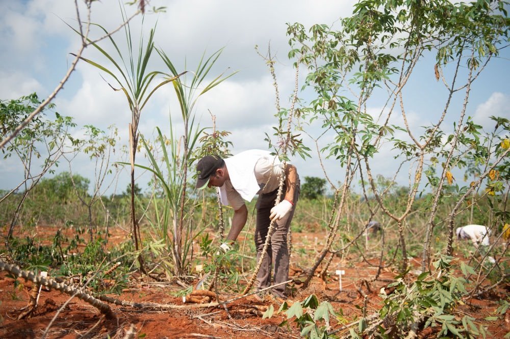 2020年3月24日,在位于海南省的中國(guó)熱帶農(nóng)業(yè)科學(xué)院的一處基地,來(lái)自埃及的副教授哈馬達(dá)·穆罕默德·哈?!ぐ⒉范爬瓍⒓又袊?guó)熱科院熱帶生物技術(shù)研究所木薯育種團(tuán)隊(duì)開展的木薯選育新技術(shù)培訓(xùn)。