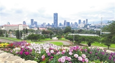 從友誼廣場眺望亞的斯亞貝巴天際線。 本報記者 萬 宇攝