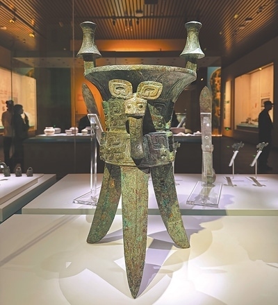 殷墟位于河南安陽市西北郊,是中國第一個(gè)有文獻(xiàn)記載并經(jīng)甲骨文及考古發(fā)掘所證實(shí)的商代晚期都城遺址,也是世界青銅文明的重要代表。殷墟博物館與殷墟宗廟宮殿區(qū)隔河相望,是全景式展現(xiàn)商文明的國家重大考古專題博物館。圖為殷墟博物館里展出的殷墟婦好墓出土的銅斝。人民網(wǎng)俄文專家 葉列娜·達(dá)維多娃攝 殷墟博物館是一座歷史文化的寶庫。在這里,我近距離地觀察一件件青銅器,仿佛看到其上閃爍著的中國古人智慧的火花;我端詳一片片的甲骨,試圖解讀那些古老的文字,仿佛在與中國古人跨越時(shí)空對話。在這里,我看到了考古學(xué)家如何不遺余力地保護(hù)歷史,也觀察到年輕的甲骨文愛好者們不斷用新鮮創(chuàng)意為文物保護(hù)注入新的生命力,這份傳承讓我深受觸動(dòng)。