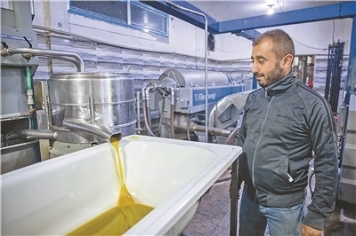 流水線上出產(chǎn)的橄欖油。本報(bào)記者 薛 丹攝影報(bào)道