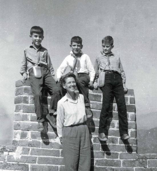 20世紀60年代,伊莎白(前)帶孩子們爬長城。后排中為柯馬凱。