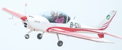 1月18日,在湖南省常德市柳葉湖龍翔低空飛行營地,游客乘坐固定翼飛機(jī)體驗(yàn)飛行。