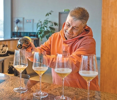 “除了葡萄酒外,我們還不斷拓展釀酒種類(lèi)。這兩款酒是由我們員工自家種植的大米和蘋(píng)果釀制的?!奔贸鰞善烤谱院赖亟榻B道,“它們?cè)谑袌?chǎng)上很受歡迎,農(nóng)產(chǎn)品附加值提高了,員工們的收入更多了,真正實(shí)現(xiàn)了產(chǎn)業(yè)與生活的緊密結(jié)合。”