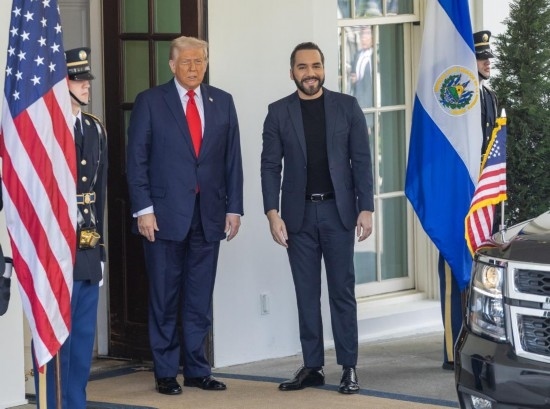 4月14日,美國總統(tǒng)特朗普在華盛頓白宮迎接到訪的薩爾瓦多總統(tǒng)布克爾。特朗普當(dāng)天在白宮會見布克爾時對記者說,伊朗正在拖延與美國的伊核問題談判進程,可能面臨美國的“嚴厲回應(yīng)”。新華社記者胡友松攝