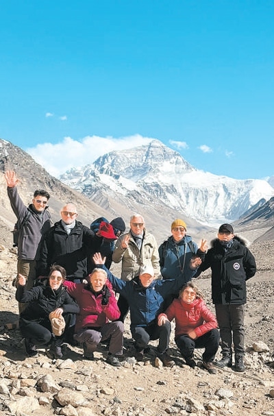 法國游客在西藏日喀則珠峰景區(qū)游覽。