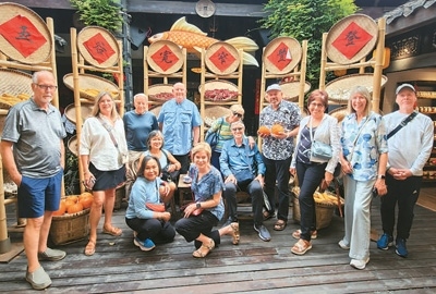 美國游客在四川成都寬窄巷子游覽。