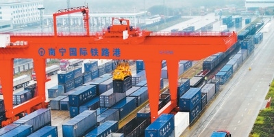 廣西南寧國(guó)際鐵路港是中國(guó)鐵路出口越南集散中心,也是中國(guó)西部陸海新通道的重要節(jié)點(diǎn)。圖為南寧國(guó)際鐵路港一片繁忙景象。