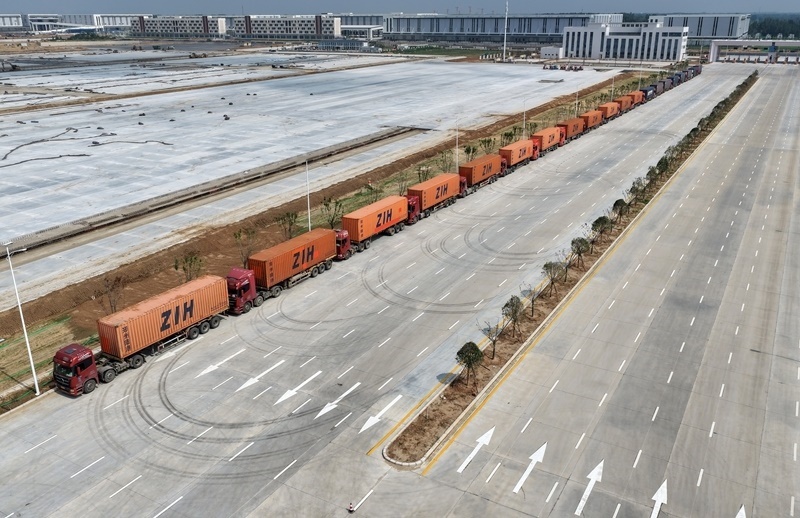 6月28日,一班列車在鄭州國際陸港核心功能區(qū)啟動運行。