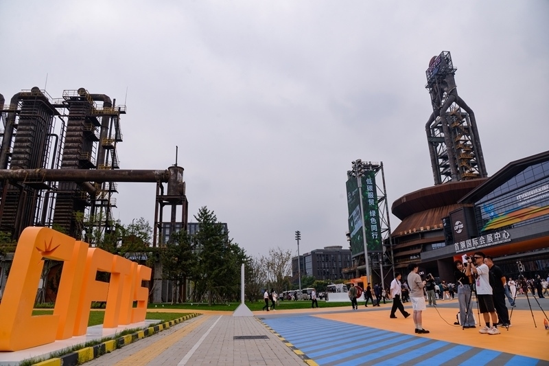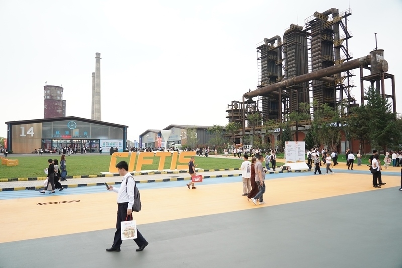 9月10日,在首鋼園四高爐,參會(huì)人員進(jìn)出會(huì)議區(qū)。