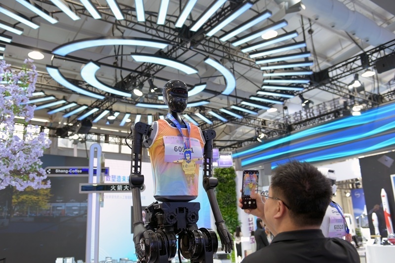 9月10日,參展者在服貿(mào)會(huì)展廳的北京經(jīng)濟(jì)技術(shù)開發(fā)區(qū)展位拍攝機(jī)器人。