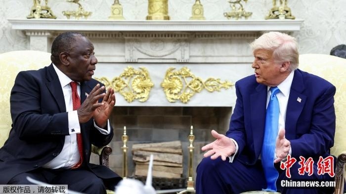 2025年5月21日,美國(guó)總統(tǒng)特朗普在白宮橢圓形辦公室會(huì)見南非總統(tǒng)拉馬福薩。