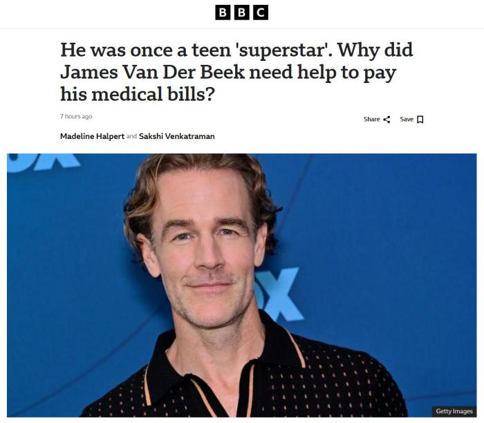 中新網(wǎng)2月14日電 據(jù)英國廣播公司(BBC)報道,美國演員詹姆斯·范德比克在20世紀(jì)90年代和21世紀(jì)初成名。憑借在青春成長劇《戀愛時代》中的表現(xiàn),范德比克走上了一些最熱門的紅毯,甚至被稱為“新晉超級巨星”。但晚年遭遇不幸時,他的家人不得不依靠朋友和粉絲的善意來獲得經(jīng)濟援助,這不僅揭示了許多演員岌岌可危的經(jīng)濟狀況,也揭示了數(shù)百萬普通美國人為支付醫(yī)療費用而苦苦掙扎的困境。