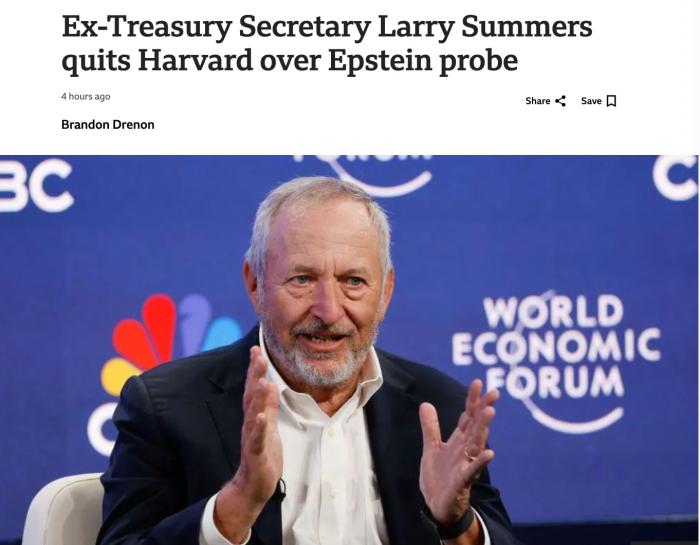 據(jù)報(bào)道,哈佛大學(xué)在25日的一份聲明中表示,薩默斯的離職“與哈佛大學(xué)正在對(duì)愛(ài)潑斯坦案相關(guān)文件進(jìn)行的審查有關(guān)”。