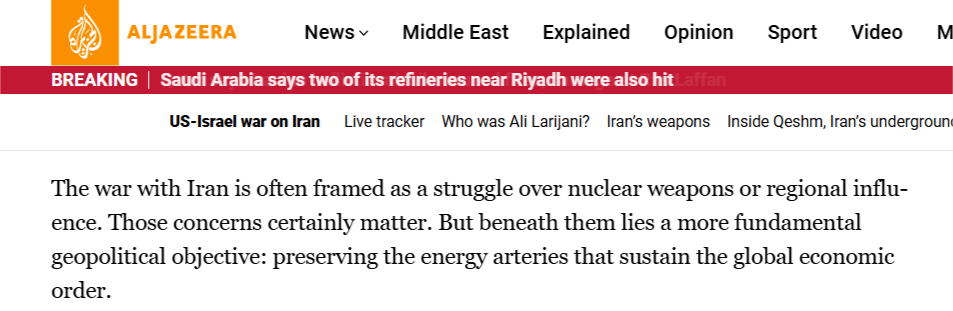 半島電視臺(tái)的報(bào)道稱,最近的事態(tài)發(fā)展表明,另一種更深層次、美國(guó)政府由來(lái)已久的“石油邏輯”正在發(fā)揮作用。美國(guó)的根本目的是控制資源,保障石油的流動(dòng)性,這是全球資本主義經(jīng)濟(jì)的命脈。