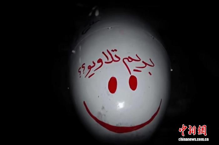 伊朗法爾斯通訊社發(fā)布的圖片顯示,伊朗伊斯蘭革命衛(wèi)隊(duì)向以色列特拉維夫發(fā)射的“目擊者-136”無(wú)人機(jī),彈頭上用波斯語(yǔ)寫著“我們?nèi)ヌ乩S夫吧”,并畫(huà)了個(gè)笑臉。