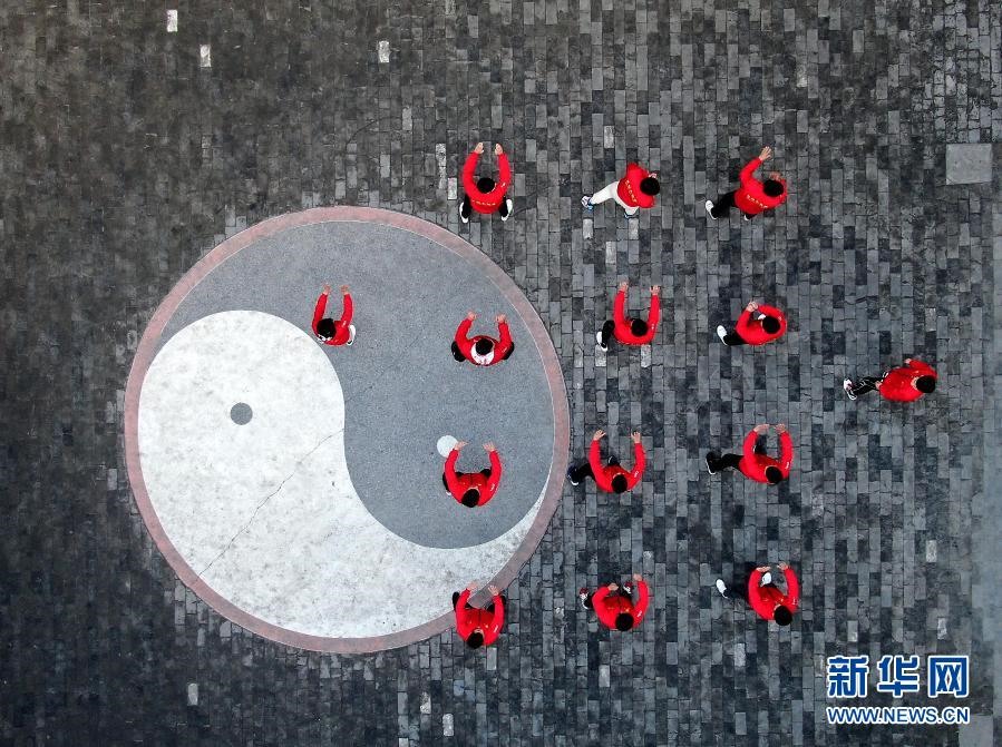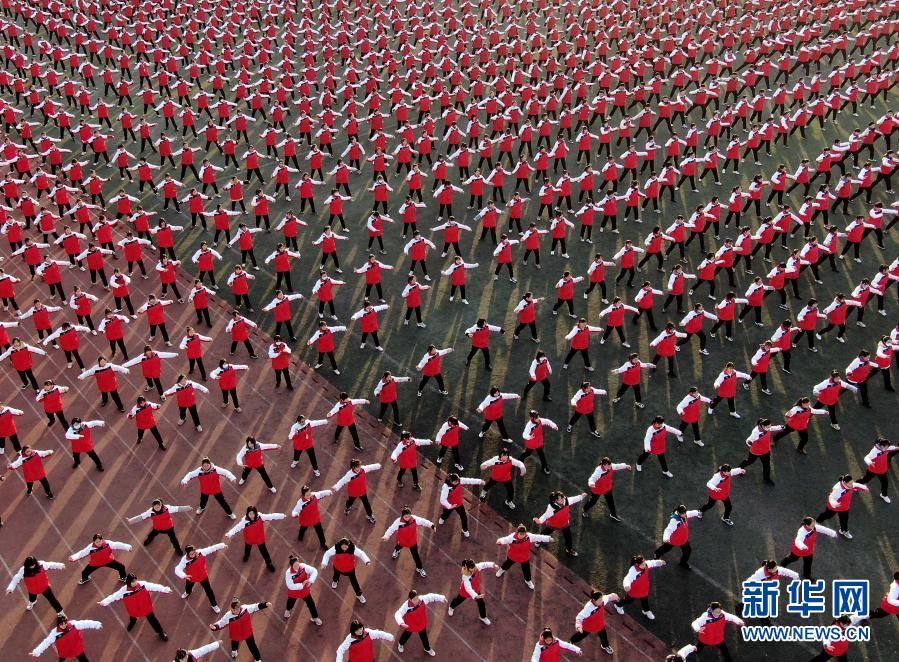 河南省焦作市溫縣第一高級(jí)中學(xué)的學(xué)生在操場(chǎng)上練拳(無人機(jī)照片,12月15日攝)。