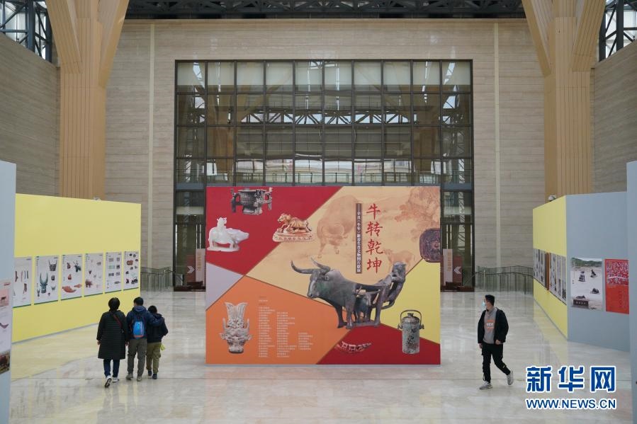 2月22日,參觀者在河北博物院《牛轉(zhuǎn)乾坤——辛丑(牛年)新春生肖文物圖片聯(lián)展》上參觀 新華社記者牟宇攝