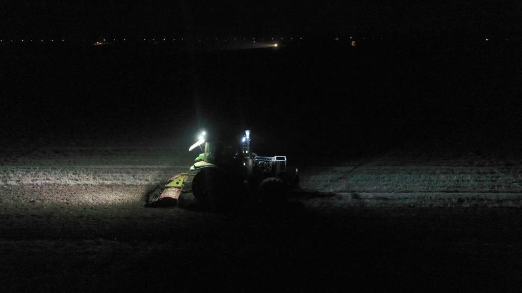 11月3日晚上,河南??h衛(wèi)溪街道西長村的田地里,農(nóng)民在耕地。(新華社記者李嘉南 攝)